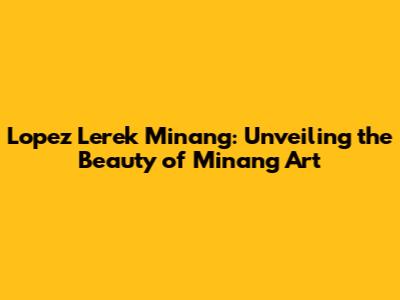 Lopez Lerek Minang: Unveiling The Beauty Of Minang Art