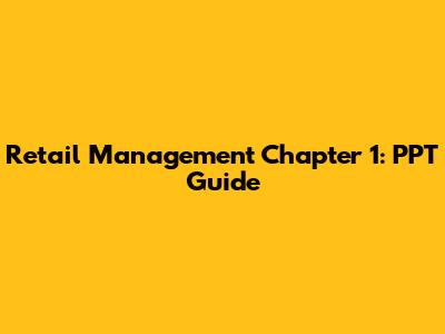 Retail Management Chapter 1: PPT Guide